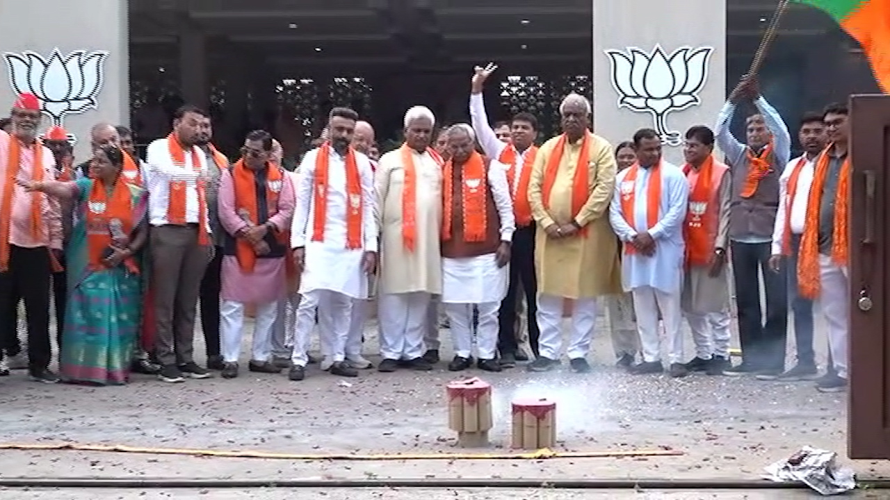 નેતાઓએ ફટાકડા ફોડી અને ગરબા રમી ઉજવણી કરી