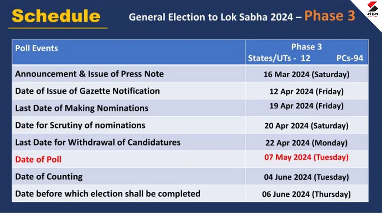 • ત્રીજા તબક્કા માટે 7 મેના રોજ મતદાન થશે