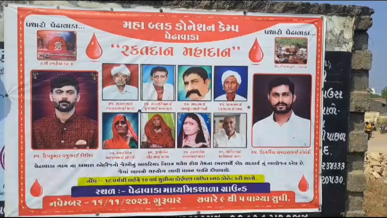ગીર સોમનાથના કોડીનારના પેઢાવાડા ગામ સમસ્ત દ્વારા છેલ્લા ત્રણ વર્ષમાં ગામના સ્વર્ગસ્થ સ્વજનોની યાદમાં શ્રદ્ધાંજલિ અર્પણ કરવા તેમજ લોહીનાં કારણે કોઈએ જીવ ન ગુમાવવો પડે તેવા પ્રેરણાદાયી અને અન્યને ઉપયોગી થવાના ઉમદા હેતુથી સ્વૈચ્છિક મહારક્તદાન કેમ્પનું આયોજન કરી 1400 બોટલ બ્લડ એકત્રિત કરી સૌરાષ્ટ્રની તમામ બ્લડ બેન્કોને અર્પણ કર્યું હતું.